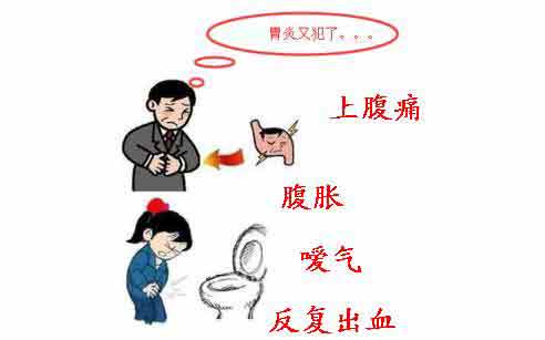 1、上腹痛:大多数胃炎患者有上腹痛,上腹部疼痛多数无规律,与饮食无关。疼痛一般分为弥漫性上腹部灼痛、隐痛、胀痛等。