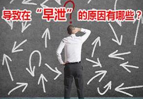 1、精神因素:长期性的纵欲过度、色情过度、手淫过频、情绪紧张、激动引起皮层中枢性兴奋增强,脊髓射精中枢兴奋性也增高,引起早泄。